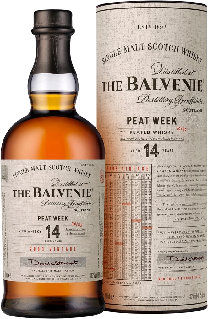 Balvenie, Peat Week, 14 Years Old — результат экспериментов, проведенных в 2001 году Дэвидом С. Стюартом — мастером по изготовлению солодовых виски, и Яном Милларом — бывшим управляющим завода компании. В то время, как несколько виноделен Спейсайда уже использовали торф в процессе создания виски, Балвени решили дистиллировать бочку крепкого торфяного солодового виски, находящуюся на выдержке в одной из виноделен Даффтауна. С тех самых пор было принято решение посвящать одну неделю в году, зовущуюся Peat Week (Торфяная Неделя), сушке ячменя с применением высокогорного торфа. Обычно островной торф придает виски оттенки йода, соли и лекарственных трав, в то время как высокогорный торф наполняет вкус и аромат землистыми, древесными и дымными нюансами. "Балвени" Пит Вик — это ограниченный и редкий по своей природе шотландский виски. Для его выдержки используют исключительно американские дубовые бочки, после чего не фильтруя бутилируют при крепости 48,3%.