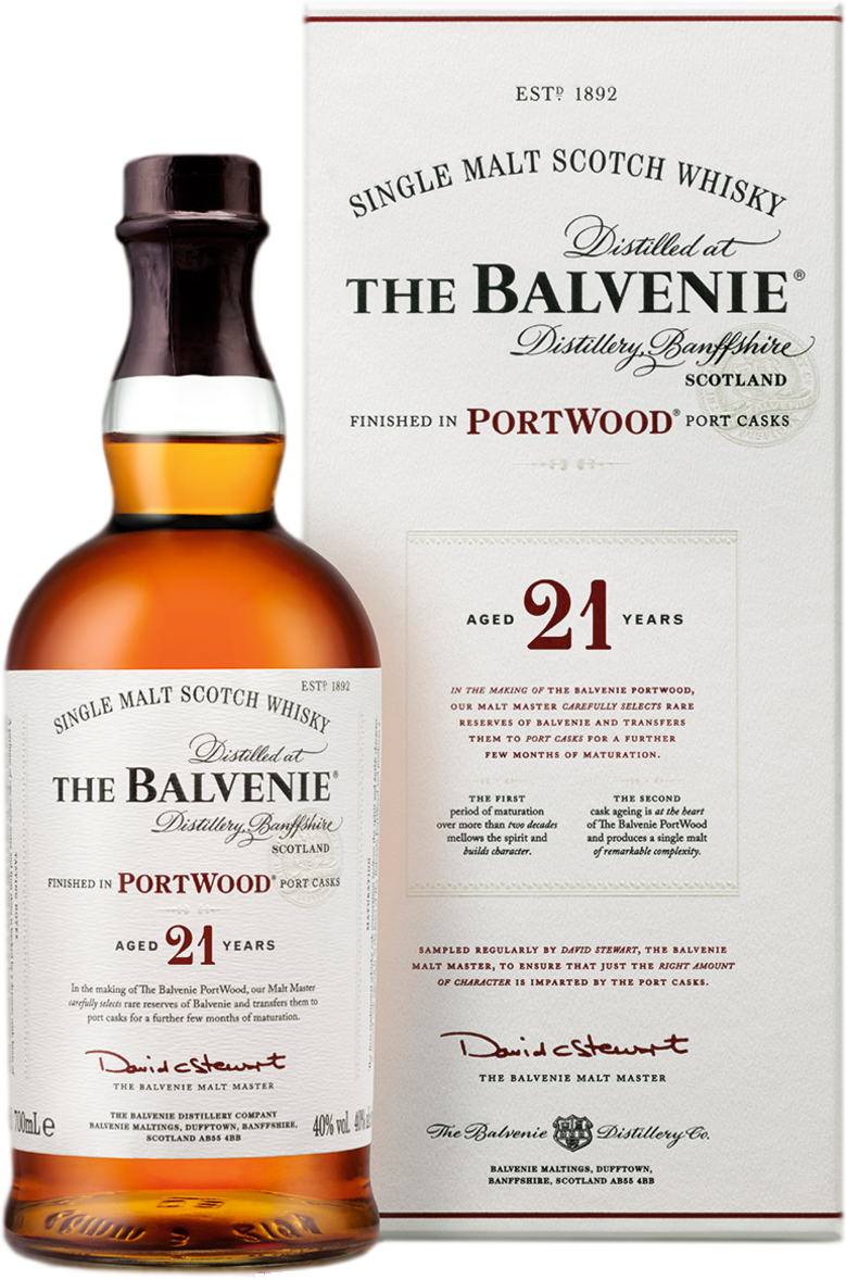 Balvenie, PortWood, 21 Years Old — это односолодовый виски, созданный из 21-летнего Балвени, который выдерживался в традиционных дубовых бочках, а затем в бочках из-под высококачественного портвейна. Мастером купажа отбираются именно те бочки, которые способны раскрыть характер этого прекрасного напитка. В 2004 году виски Balvenie PortWood 21 Years Old удостоился звания «Лучший односолодовый виски» на конкурсе International Wine & Spirits competition.