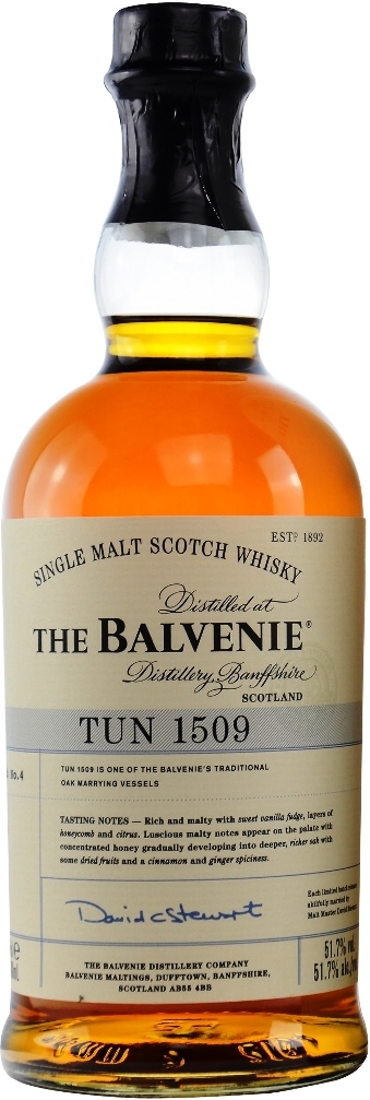 Виски Balvenie, "TUN 1509" является продолжением очень интересной серии релизов — 9 выпусков купажа односолодовых виски без указания возраста. Бленды получали устойчиво высокие оценки и пользовались широким спросом: на вторичном рынке некоторые экземпляры перепродавались с пятикратным превышением изначальной стоимости. William Grant & Sons для удовлетворения растущего интереса решили запустить новый релиз — "TUN 1509". Объем бочки этого выпуска в четыре раза больше предыдущей. Бочка "Tun 1509" размещена на складе №24.