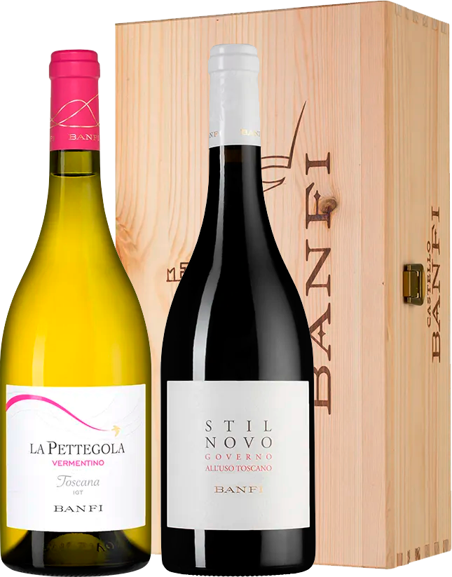 Banfi, Stilnovo, Toscana — красное полусухое вино, созданное из винограда сорта Санджовезе. Ягоды произрастают на виноградниках компании в регионе Тоскана. Сбор 70% урожая проводится в середине сентября, на винодельне плоды подвергаются ферментации при температуре 28-30 °С в течение 2-3 недель. Остальные 30% ягод собирают во вторую половину октября (к тому времени виноград немного завяливается на виноградниках) и добавляют к первой части для дальнейшей ферментации, которая длится 4 недели. 20% вина выдерживаются в 10-летних барриках.