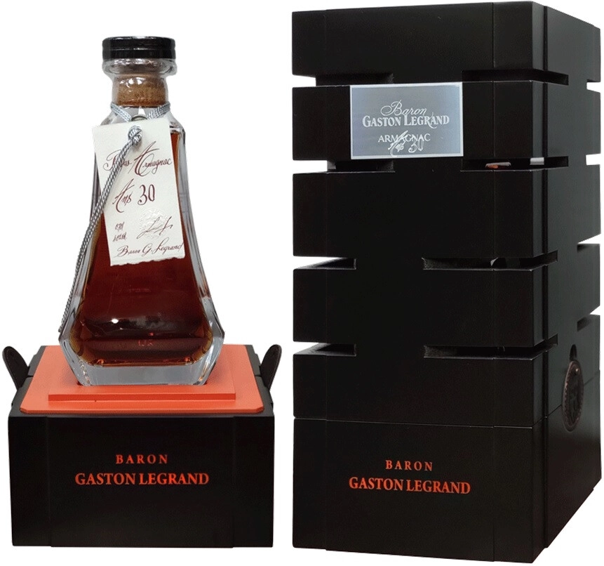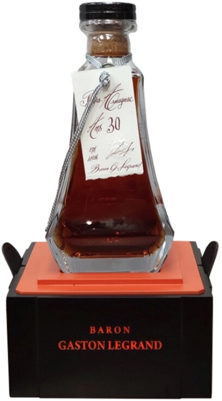 Baron G. Legrand, 30 ans, Bas Armagnac — благородный арманьяк, выдержанный в бочках из гасконского дуба не менее 30 лет. В производстве арманьяка используется 100% дистиллят виноградного вина. Арманьяк обладает удивительно мягким, сбалансированным вкусом и насыщенным ароматом. Арманьяк разливается в хрустальный графин "Elusa" и продается в элегантном ларце. Такой изысканный напиток, как "Барон Г. Легран" 30-летний с уникальным дизайном упаковки, придуманным и разработанным самой мадам Леро, всегда будет желанным подарком на любой праздник, а также позволит приобщиться к традициям легендарной земли.