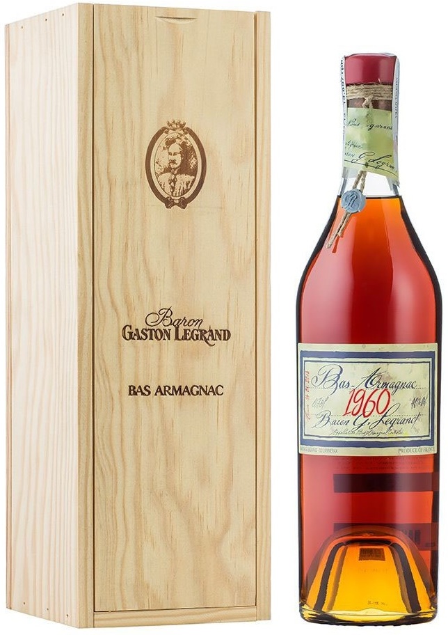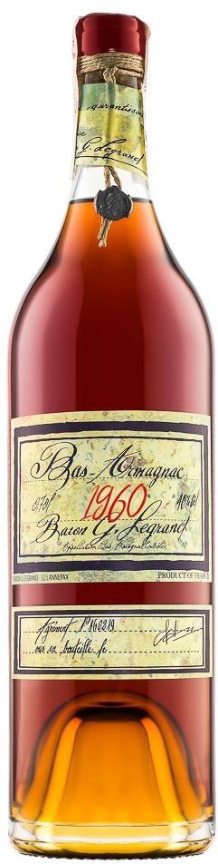 Baron G. Legrand 1960 Bas Armagnac (Барон Г. Легран 1960 Ба Арманьяк) — этот арманьяк превосходного сбалансированного вкуса и аромата. За долгое время выдержки его спирты потеряли агрессивность и приобрели приятную танинность. Безупречное качество арманьяка согреет тело и душу, подарив изысканное наслаждение.