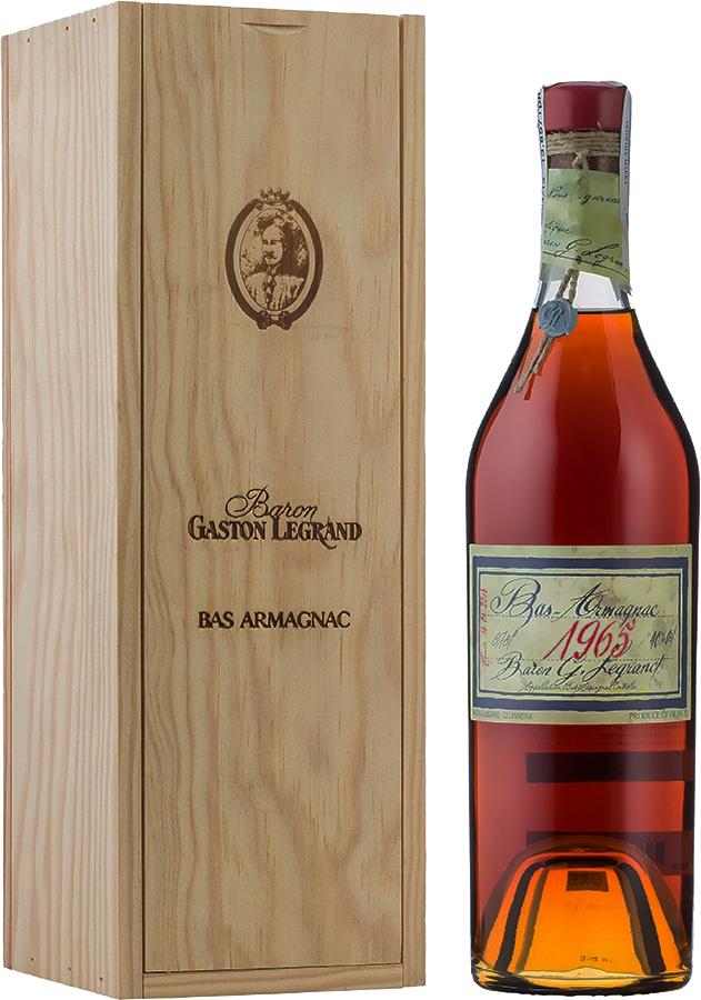 Baron G. Legrand 1965 Bas Armagnac (Барон Г. Легран 1965 Ба Арманьяк) — его роскошный, необыкновенно изящный букет удивительно сочетается с темпераментом и мощью вкуса. Все это делает необыкновенный миллезим 1965 года изысканным подарком для Вас и Ваших близких. За долгое время выдержки его спирты потеряли агрессивность и приобрели приятную танинность. Безупречное качество арманьяка согреет тело и душу, подарив изысканное наслаждение.