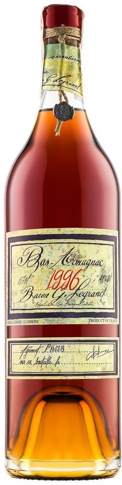 Барон Г. Легран, Ба Арманьяк, 1996 — арманьяк, в котором сочетаются глубокий интенсивный вкус и чарующий, манящий аромат. За долгое время выдержки его спирты потеряли агрессивность и приобрели приятную танинность. Безупречное качество арманьяка согреет тело и душу, подарив изысканное наслаждение.
