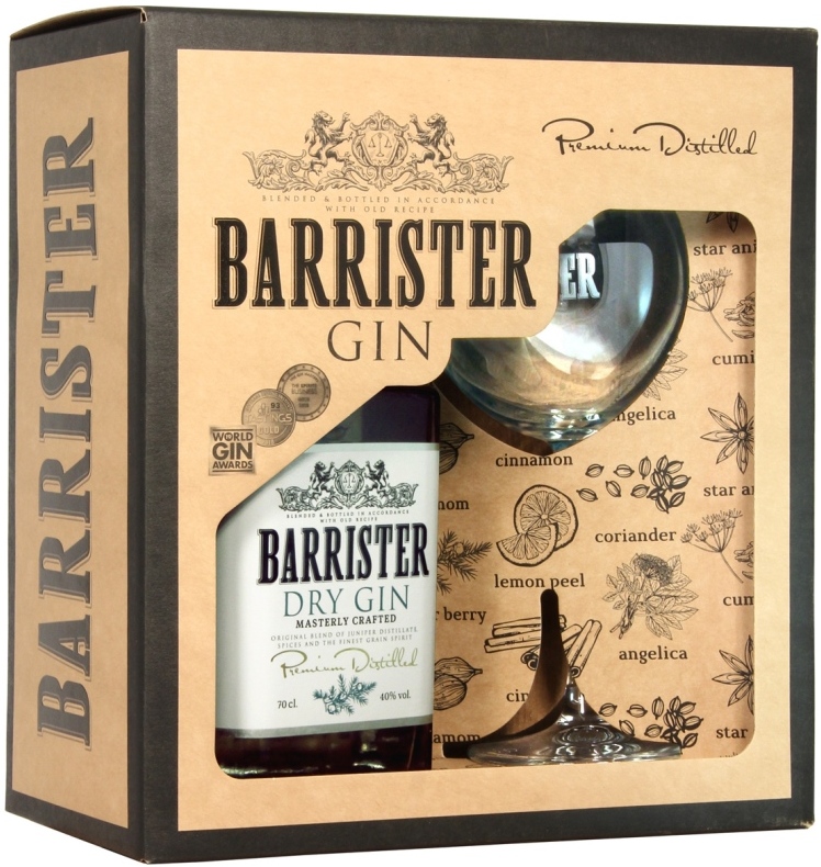 Barrister, Dry Gin, with glass in gift box, 0.7 л.