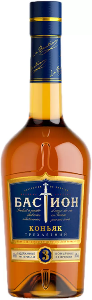 Бастион, 3 года выдержки — символ благородства, рыцарства и хорошего вкуса. Это премиальный продукт высокого качества, изготовленный по классической французской технологии из дистиллятов, доставляемых непосредственно из региона Cognac (Франция). Коньячные спирты, на основе которых произведен напиток, подвергаются двойной перегонке в традиционных медных аламбиках и не менее 3 лет выдерживаются в бочках из обожженного лимузенского дуба под строгим контролем мастеров коньячного дела. Попадая на завод, французские дистилляты искусно смешиваются мастерами ассамбляжа, которые добиваются гармоничного вкуса и утонченного аромата. Абсолютно высокое качество коньяков "Бастион" — результат тщательного отбора каждой партии коньячных дистиллятов и многолетнего опыта мастеров коньячного дела.