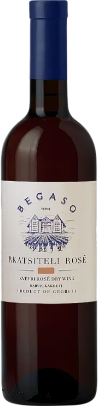 Begaso, Rkatsiteli Rose, Kvevri — аутентичное грузинское розовое вино, созданное в соответствии с древними грузинскими традициями из винограда сорта Ркацители розовый, который выращивается в Кахетии, в микрозоне Киндзмараули. Это красивейшее место с живописными пейзажами расположено на пересечении главной реки Кахетии — Алазани с небольшой, но стремительной рекой Дуруджи. Уникальный почвенный состав, богатые минералами горные воды, содержащие крупицы золота и серебра, дарят винограду, выращенному здесь, и созданным из него винам прекрасный, неповторимый вкус. Ркацители, как правило, используется для производства белого или оранжевого вина, но этот клон позволяет отойти от традиций. Его яркая рубиново-красная пигментация придает вину заманчивый розовый цвет. Ферментация сусла в контакте с кожицей проходит в квеври и занимает до 4 месяцев. Длительный контакт с мезгой одаривает напиток не только красивым цветом, но и приятной терпкостью настоящего грузинского вина. Затем вино переливается в другие квеври и дозревает на протяжении не менее года перед бутилированием.
