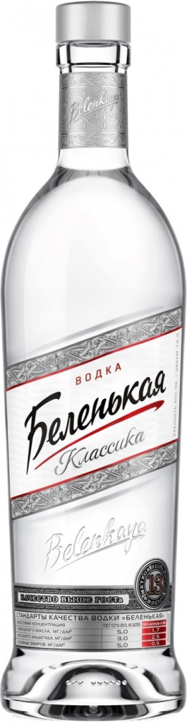 Водка "Беленькая" появилась на свет в 2001 году. Ее производителем является компания Синергия. Основным заводом по производству напитка считается завод "Традиции Качества". На данном этапе своего существования "Беленькая" входит в 20-ку самых продаваемых водок мира. Она изготавливается из натуральных продуктов, таких как чистая родниковая вода, которая придает водке особую мягкость, и натуральный мед, который делает употребление "Беленькой" более приятным. Напиток проходит фильтрацию кварцевым песком и 13-метровым угольным фильтром. Ко всему этому, водка не содержит в своем составе генно-модифицированных компонентов. "Беленькая" имеет целый ряд защитных знаков: контр этикетка с термопечатью, которая краснеет при охлаждении бутылки, защитная сетка на нижней этикетке и голограмма.