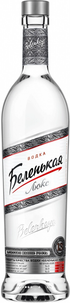 Производителем водки Беленькая Люкс является компания Синергия. Основным заводом по производству напитка считается завод "Традиции Качества". На данном этапе своего существования "Беленькая" входит в 20-ку самых продаваемых водок мира. Изготавливается она из натуральных продуктов, таких как чистая родниковая вода, которая придает водке особую мягкость, и натуральный мед, который делает употребление "Беленькой" более приятным. Напиток проходит фильтрацию кварцевым песком и 13-ти метровым угольным фильтром. Ко всему этому, водка не содержит в своем составе генно-модифицированных компонентов. "Беленькая" имеет целый ряд защитных знаков: контрэтикетка с термопечатью, которая краснеет при охлаждении бутылки, надпись "Качество выше ГОСТа" на дозаторе, контроль вскрытия колпака, защитная сетка на нижней этикетке и голограмма. Водка "Беленькая Люкс" станет душой любого застолья!