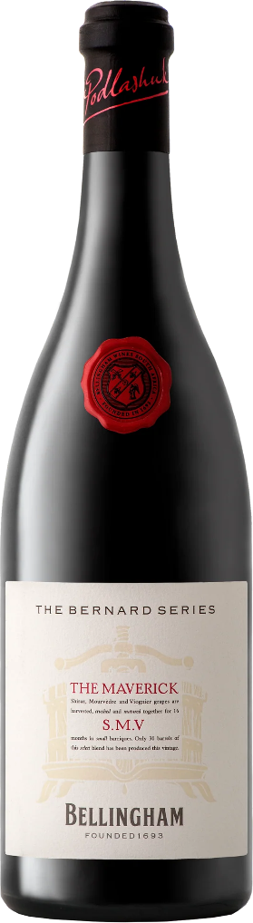 The Maverick, S.M.V. — красное сухое вино с неповторимой индивидуальностью, приковывающее внимание своей изначальной мощью, но затем раскрывающееся утонченностью и деликатностью при дегустации. Купаж представлен виноградом сортов Шираз, Мурведр и небольшим количеством Вионье, который произрастает в Вур-Паардеберг, небольшой винодельческой зоне в округе Паарл.