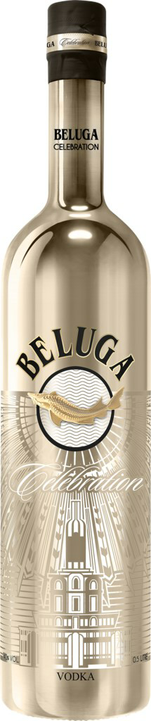 Технология производства эксклюзивной "праздничной" бутылки для "Beluga" Celebration сложна и трудоемка: она включает в себя двойную платиновую вакуумную металлизацию, покрытие золотым лаком и нанесение декора методом шелкографии. Этот юбилейный выпуск — знак уважения заводу с вековой историей.
