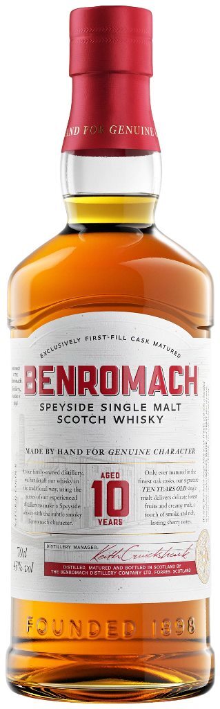 Виски "Бенромах" 10-летний изготовлен из лучших дистиллятов, купажированных с чистейшей ледниковой водой. Своим благородным вкусом виски обязан секретам выдержки, ведь первые 9 лет он хранился в тщательно подобранных бочках из-под хереса и бурбона, а на финальном этапе в течение 1 года дозревал в бочках из-под сладкого Олоросо.