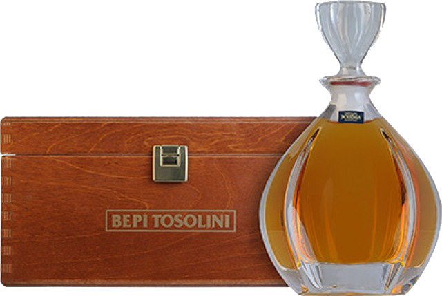 Граппа Bepi Tosolini, "Grand Ville Grappa di Chardonnay", созданная на основе винограда сорта Шардонне, выдержана в дубовых бочках до крепости 40°. Граппа разлита в графины из богемского стекла и упакована в изящный деревянный кофр.