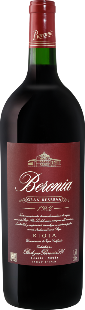 Вино "Beronia" Gran Reserva — восхитительный образец старой школы региона Риоха. Для производства вина используется отборный виноград, собранный со старейших виноградников хозяйства. На винодельне плоды подвергаются мацерации, ферментации при температуре 26-28°С с регулярной перекачкой сусла и пост-мацерации. Выдержка винтажа 1982 года проходила в бочках из американского дуба из Огайо емкостью в 225 литров и длилась 54 месяца. После розлива по бутылкам в марте 1990 года вино созревало в подвалах винодельни еще не менее 36 месяцев.
