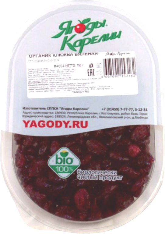 Продукты Ягоды Карелии, Клюква вяленая, 150 гр.