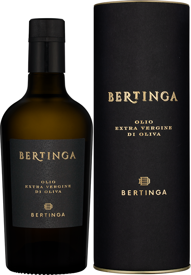Bertinga, Black Label, Olio Extra Vergine di Oliva — итальянское оливковое масло холодного отжима, в производстве которого используются оливки сорта Морайоло. Они произрастают в Тоскане в оливковых садах, сбор урожая проводится вручную в момент оптимальной спелости плодов. Холодный отжим проводится в течение суток после сбора урожая, в результате чего в масле сохраняются все полезные свойства и витамины.