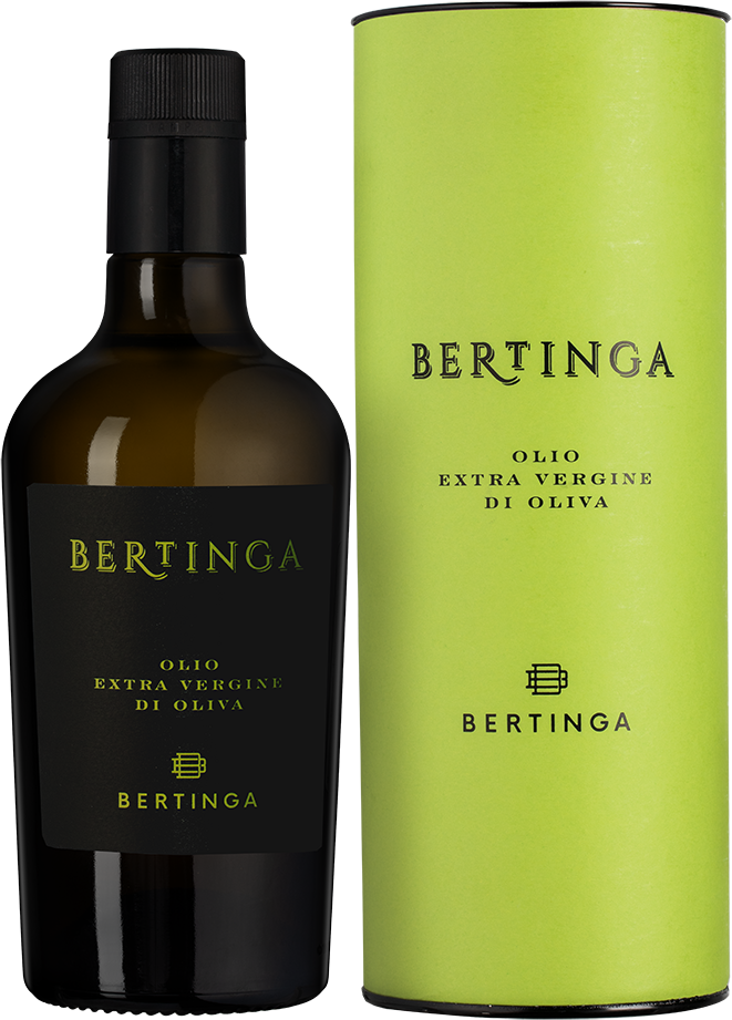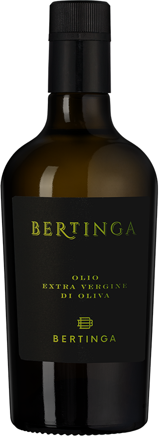 Bertinga, Green Label, Olio Extra Vergine di Oliva — итальянское оливковое масло холодного отжима, в производстве которого используются оливки сорта Морайоло. Они произрастают в Тоскане в оливковых садах, сбор урожая проводится вручную в момент оптимальной спелости плодов. Холодный отжим проводится в течение суток после сбора урожая, в результате чего в масле сохраняются все полезные свойства и витамины.