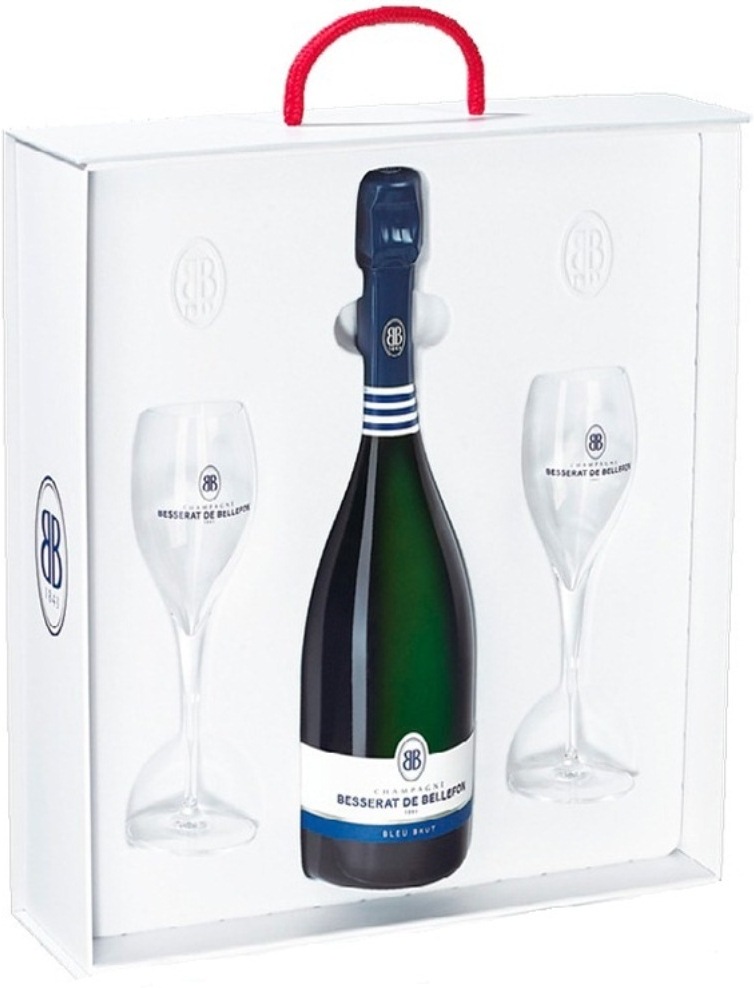 Besserat de Bellefon, Bleu Brut, with 2 glasses in gift box