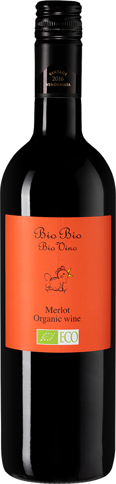 Bio Bio, Merlot — органическое красное полусухое вино, созданное из винограда сорта Мерло. По окончании сбора урожая ягоды отправляют на винодельню для дальнейшей традиционной винификации. Вино составит гармоничную пару блюдам из морепродуктов, моллюскам, пасте и пицце. Потенциал хранения вина составляет 2-3 года.