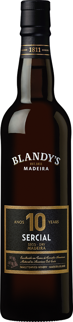Blandy's Sercial Dry 10 Years Old — роскошная мадера, созданная из винограда сорта Серсиал, который произрастает на виноградниках, расположенных на высоте 500 метров над уровнем моря на юге острова Мадейра, в частности, на Жардин-де-Серра. После сбора урожая, ягоды подвергаются ферментации на кожице с натуральными дрожжами при контролируемой температуре 18-21°C в резервуарах из нержавеющей стали. Примерно через 5 дней ферментация останавливается для приобретения желаемой сладости. Выдерживается мадера 10 лет в бочках из американского дуба по традиционной системе "Canteiro".
