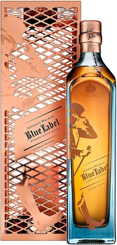 Вдохновленный мастерством и наследием, присущими каждой капле виски Джонни Уокер, Том Диксон, британский дизайнер, удостоенный множества наград, разработал эксклюзивную металлическую коробку, бутылку, подставку, ведерко для льда и крышку от бутылки для Johnnie Walker, "Blue Label". Впервые лимитированная серия появилась на Миланской неделе дизайна в 2017, а в продажу поступила уже в октябре.