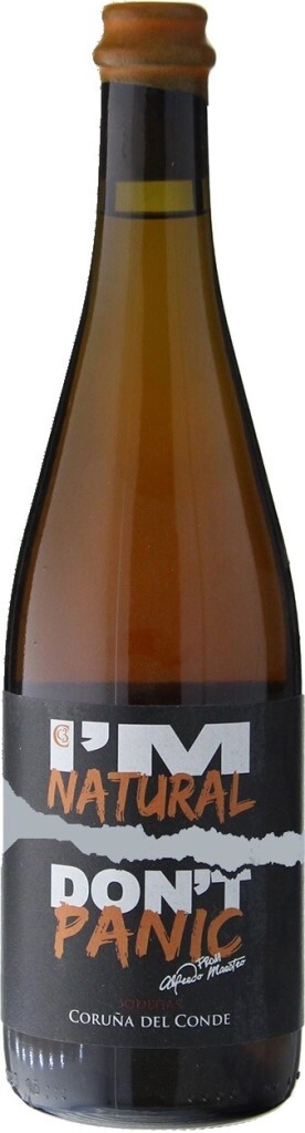 Bodegas Coruna del Conde, I'm Natural Don't Panic, from Alfredo Maestro — неординарное оранжевое вино из винограда сортов Паломино и Мальвазия, который специально выращивается для Хульена и его негоциантского проекта "Айм Нэчэрал Дон'т Паник" на виноградниках хозяйства Alfredo Maestro, также приверженца органического подхода. Виноградники обрабатываются естественными и экологически устойчивыми методами без использования химикатов, пестицидов или гербицидов, с большим уважением к природе и окружающей среде, чтобы лозы находились в полной гармонии. Виноград собирается вручную и подвергается длительной мацерации в чанах из стекловолокна. Спонтанная ферментация проводится исключительно с использованием диких дрожжей. Вино выдерживается 5 месяцев на осадке до бутилирования, которое проводится без фильтрации и чрезмерного добавления серы. Далее вино в течение 6-12 месяцев перед поступлением на рынок "отдыхает" в так называемых "дортуарах" винодельни. Некоторые хранилища находятся на винодельне, остальные — в подземной галерее замка, где предки Лопес уже делали свои вина.