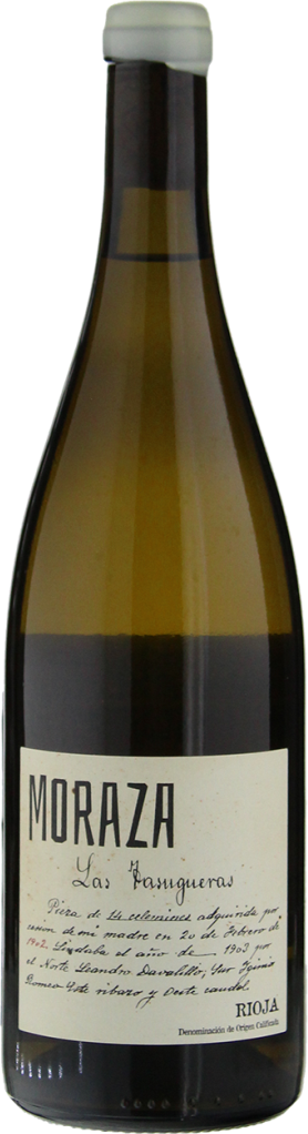 Bodegas Moraza, Las Tasugueras, Blanco — стильное, оригинальное, молодое, но текстурированное белое вино из редкой разноводности Темпранильо Бланко. Виноград выращивается на винограднике "Лас Тасугерас" в Сан-Висенте-де-ла-Сонсьерра, на высоте 600 метров над уровнем моря. Участок имеет известково-глинистые почвы с преобладанием известняка. Лозы культивируются органическими и биодинамическими методами. Урожай собирается вручную. Все процессы винификации осуществляются с помощью гравитационного метода. Спонтанная ферментация с использованием диких дрожжей протекает в стальных резервуарах. Выдержка длится около 6 месяцев и также проходит в чанах из нержавеющей стали.