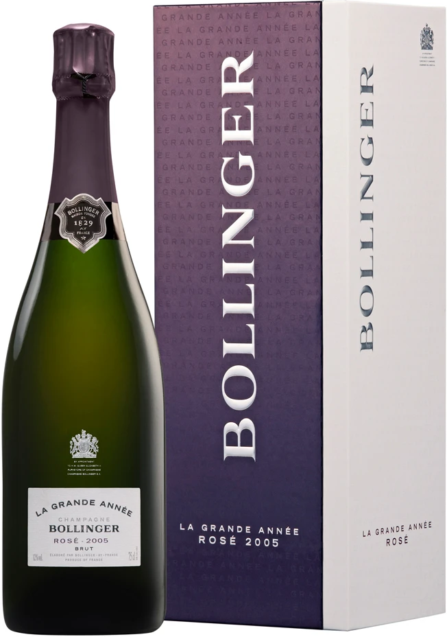 Шампанское "La Grande Annee" Rose Brut является символом красоты, совершенства вкуса и блистательным показателем стиля выдающегося дома Bollinger. Это замечательное вино создают исключительно в годы самых продуктивных урожаев, в результате чего марка напитка и получила такое имя — "Великий год". Оно славится не только характерными качествами каждого винтажа, но и уникальным стилем, зарожденным выдающейся землей и традициями технологии виноделия. Вино выдерживали на осадке шесть лет, все это время натуральная корковая пробка надежно хранила его от окисления. Благодаря столь длительному пребыванию в погребах винодельни, шампанское приобрело неповторимый вкус уникального качества.