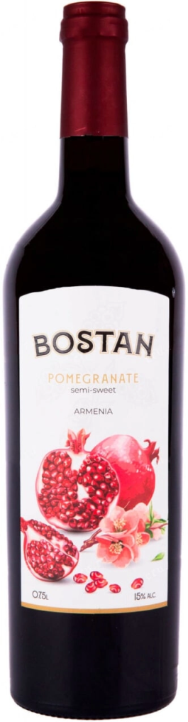 Одним из лучших представителей плодово-ягодных вин считается именно гранатовое вино, которое домашние виноделы Армении еще с древности изготавливали в виде настойки. Насыщенное, фруктовое полусладкое вино "Bostan" Pomegranate создается из натурального сока отборных спелых плодов граната, произрастающих в экологически чистых регионах Армении. Урожай собирается по достижении плодами оптимальной зрелости. Вино изготавливается по традиционной технологии, благодаря которой сохраняются ценные свойства граната. Гранатовое вино — уникальный напиток, который считается эликсиром молодости, символом любви и плодородия.