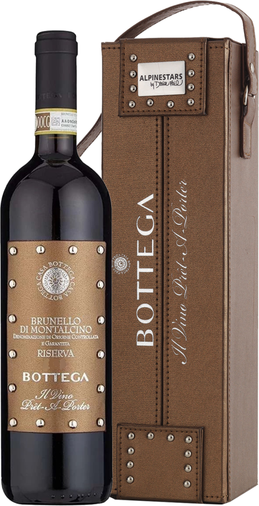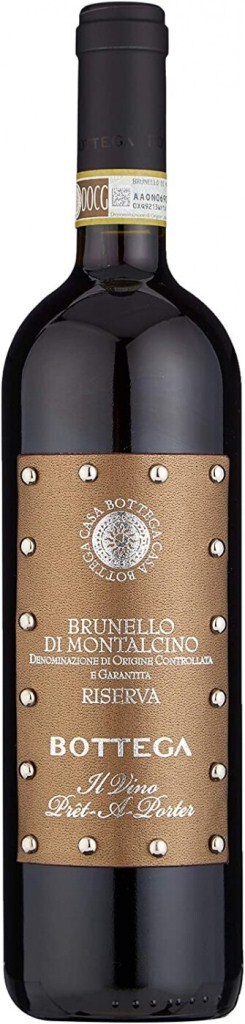 Bottega, "Il Vino Pret-A-Porter" Brunello di Montalcino Riserva — одно из самых престижных итальянских вин, известных во всем мире. Вино производится из винограда сорта Санджовезе Гроссо (Брунелло), выращенного на виноградниках компании, которые расположены на юго-восточной стороне Монтальчино. Климат в Монтальчино характеризуется как средиземноморский и является одним из самых теплых и сухих в Тоскане. Виноградные лозы, возраст которых варьируется от 5 до 25 лет, произрастают на сланцевых почвах, обладающих хорошими дренажными свойствами, что обеспечивает лозам доступ к глубоко залегающим грунтовым водам. Урожай собирается вручную, как правило, в начале октября. На винодельне виноград частично дестеблируется и бережно прессуется. Далее следуют ферментация в резервуарах из нержавеющей стали при контролируемой температуре и мацерация в течение 25 дней с ежедневным пробитием шапки мезги. Затем сусло отстаивается на протяжении 3-х месяцев в стальных емкостях, после чего проводится яблочно-молочное брожение. Выдерживается вино 48 месяцев в бочках из славонского дуба разного объема. Потенциал хранения Bottega, "Il Vino Pret-A-Porter" Brunello di Montalcino Riserva составляет 5-10 лет.