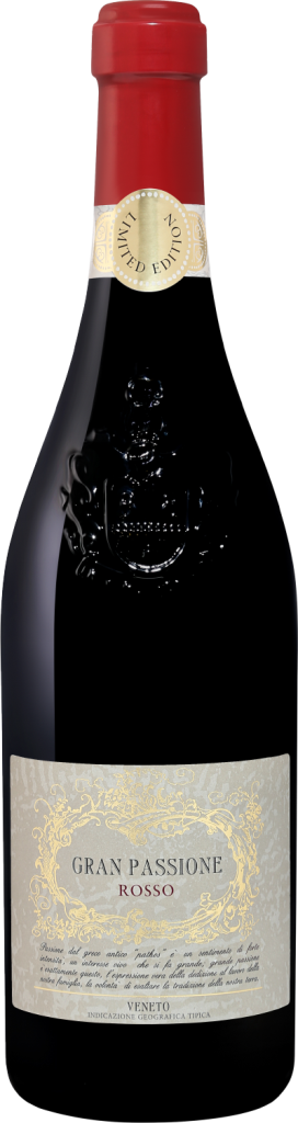 Gran Passione, Rosso - красное полусухое вино, изготовленное из винограда сортов Мерло и Корвина, выращенного в зоне Венето. Вино создается по традиционной для вин Амароне методике "аппассименто" с последующей ферментацией при контролируемой температуре и обладает типичным сортовым вкусом и ароматом. Рекомендуется в сочетании с мясными блюдами, сырами и при смене блюд. Потенциал хранения вина составляет 2–3 года.