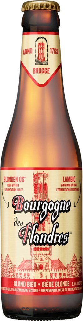 Уникальная смесь светлого эля Blonden Os, сваренном на пивоварне в Брюгге и молодого ламбика от пивоварни Тиммерманс. Ламбик, входящий с состав пива Bourgogne Des Flandres, обладает цитрусовыми нотками, идеально гармонирующими с солодовым вкусом пива Blonden Os. В результате получается бодрящее, кисло-сладкое пиво, с оттенками апельсинов и легкой горчинкой в послевкусии.