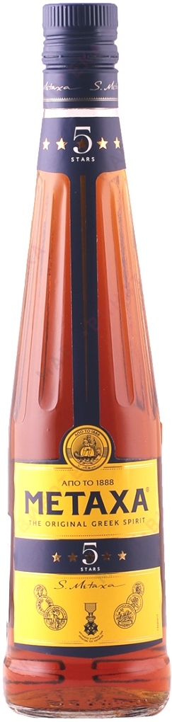 Metaxa, 5 Stars — наиболее популярный бренди коллекции "Metaxa". Спирты, на основе которых он создан, выдерживаются в дубовых бочках более пяти лет. "Метакса" 5 звезд разливается в бутылки, облик которых навеян мотивами классической архитектуры Древней Греции. В Россию этот напиток поставляется со времен Александра III. "Метакса" — это уникальный тёмный бренди, известный во всём мире.