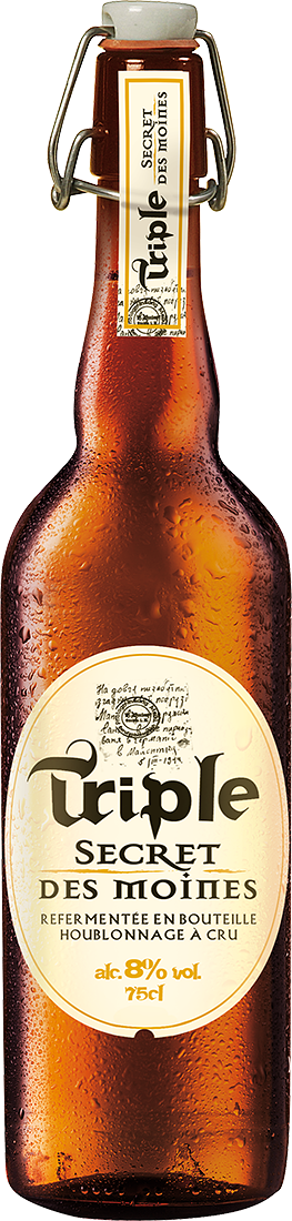 Triple "Secret des Moins" — 100% натуральное светлое пиво верхового брожения, выполненное в стиле французский трипль. Пиво изготавливается исключительно из натуральных ингредиентов: очищенной воды, ячменного солода, пшеницы, пивных дрожжей и хмеля из Северного Эльзаса. Светлый эль обладает великолепным балансом хмелевого вкуса и выразительной, но не подавляющей горечи на уровне 27 IBU. Ферментация протекает в чанах из нержавеющей стали. Технология производства Triple "Secret des Moins" заключается в использовании "сухого прыжка". Сухой прыжок — это уникальный метод пивоварения, при котором хмель добавляется после кипения, а не во время варки сусла, как обычно. Сухой прыжок — это способ придать пиву больше вкуса и аромата, а не горечи. Традиционным методом является заполнение нейлоновых мешков хмелем и их подвешивание в бродильных чанах. С помощью сухого охмеления пивовары максимизируют качество каждого прыжка. Пиво циркулирует из ферментера, протекает через емкость с хмелем и возвращается обратно в резервуар. Регулируя время, температуру и скорость циркуляции, пивовары могут контролировать аромат и вкус готового пива. Вторичная ферментация протекает в бутылках. Со временем возможно появление осадка на дне бутылки. Пиво гармонично сочетается с мясными и овощными блюдами, фруктами, морепродуктами, выдержанными сырами, блюдами итальянской кухни и пиццей.