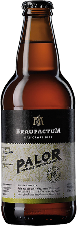 BraufactuM, Palor — английский светлый эль, охмеленный новым сортом хмеля Поларис. Пиво производится без дрожжей. В его рецептуру также входит солод разновидностей Карамельный, Пэйл Эль и Пльзеньский. Этот эль является более элегантной и утонченной версией классических британских биттеров и удивляет своим ароматическим букетом с необыкновенными цветочно-медовыми оттенками. Во вкусе пива сухость и свежесть переплетаются с ягодно-сливовыми нотками.