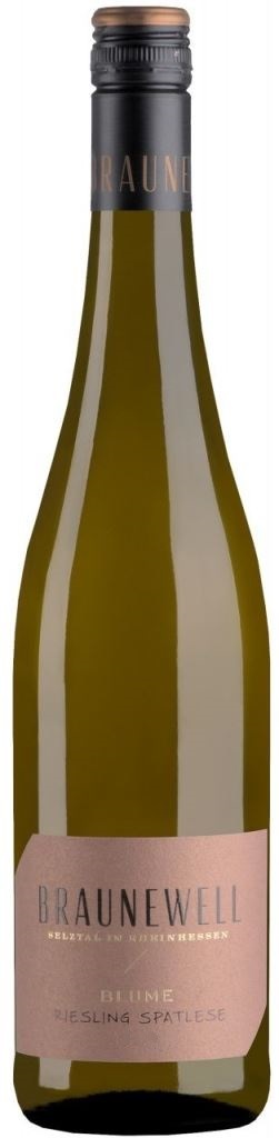 Braunewell, "Blume" Riesling Spatlese — сладкое белое вино из винограда сорта Рислинг, который выращивается на мергелевых и известковых почвах виноградника "Blume", одного из лучших в хозяйстве, в Эссенхайме. Виноград собирается в октябре по достижении ягодами максимальной зрелости, когда они слегка затронуты Ботритисом. Ферментация протекает в емкостях из нержавеющей стали. Выдерживается вино на осадке до начала февраля. Вино станет идеальным дополнением к фруктовым и сливочным десертам, крем-брюле или кайзершмаррн со сливами. Потенциал вина составляет не менее 30 лет.