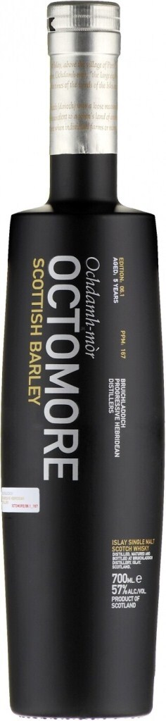 Octomore, Scottish Barley — молодой, но в высшей степени зрелый напиток, который сразу привлечет к себе Ваше внимание. Его активный, сильно торфяной вкус тем не менее обладает легкостью и тонким изяществом. Виски назван в честь фермы Октомор, которая расположена всего в 1,6 км вверх от винокурни Брукладди. Именно здесь рождается отборный ячмень, который позволяет создавать шотландский виски исключительного качества.