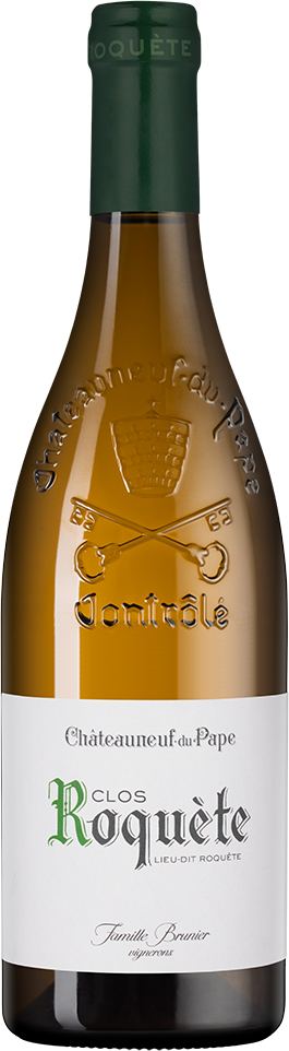 Мадам Сильви Брюнье лично участвовала в разработке этикетки вина, совместно с художниками. Этикетка представляет собой довольно простую иллюстрацию: линия горизонта с контуром замка посредине, которую можно увидеть из Шатонеф. Это подчеркивает древние корни, душу и уникальную историю вина "Clos La Roquete".