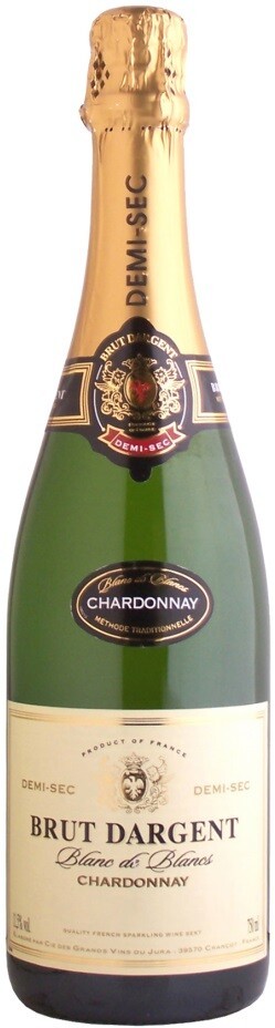 Brut Dargent, Blanc de Blanc Chardonnay Demi-Sec — великолепное полусухое игристое вино, которое создается методом "шампенуа". Для его производства используется самый лучший виноград, который произрастает в регионе Жюра. Выдерживается брют в стальных емкостях, а затем в бутылках. Словосочетание "Blanc de Blanc" означает то, что это вино создано исключительно из Шардоне. Это восхитительное освежающее игристое вино с нотками экзотических фруктов подарит прекрасное настроение!