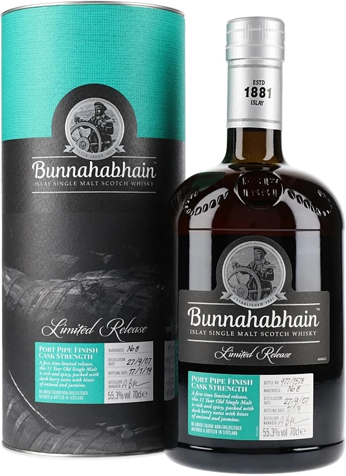 Bunnahabhain, Port Pipe Finish — богатый, роскошный виски. В течение первых 9 лет он выдерживался в хогсхедах, а остальные 2 года — в бочках из-под портвейна. Ограниченный релиз виски состоит всего из 1578 бутылок. До 1960 года поставки для завода Буннахавэн прибывали на лодках. Сегодня волны приносят совсем другие грузы и пассажиров, часто на потрясающих океанских яхтах. Их цель и пункт назначения — знаменитый приветственный односолодовый виски с острова Айла.