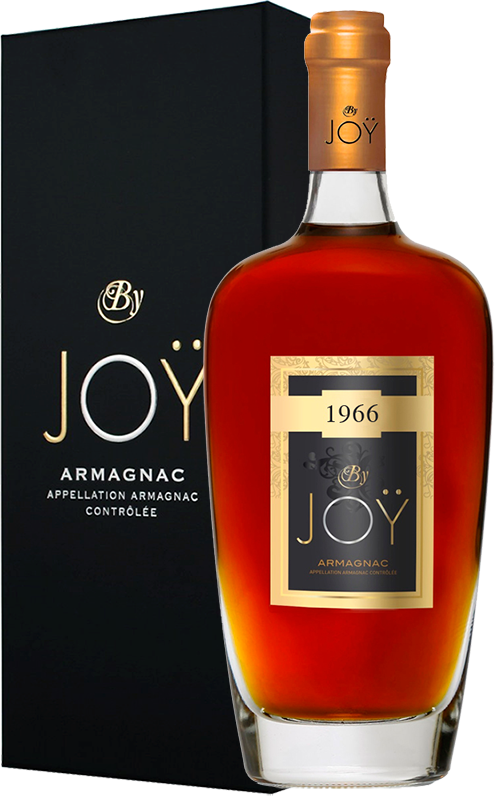 "Joy" Vintage, 1966 — уникальный выдержанный арманьяк, который входит в коллекцию "By Joy", созданную, чтобы дарить удовольствие и наслаждение при дегустации. Эта коллекция включает молодые, активные и современные духом арманьяки, которые объединяют в себе зрелость и утонченность, опыт и энергию. "Мы решили предложить винтажные арманьяки с большим сроком выдержки. Они раскрывают массив ароматов и сложную отделку. Так же, как книги, каждый год сбора винограда рассказывает свою историю ... и вы обнаружите, что мы эксклюзивно предлагаем более 20 лет истории Арманьяка".