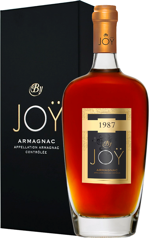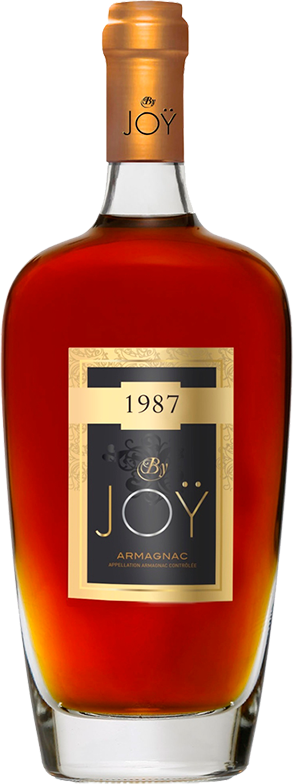 "Joy" Vintage, 1987 — уникальный выдержанный арманьяк, который входит в коллекцию "By Joy", созданную, чтобы дарить удовольствие и наслаждение при дегустации. Эта коллекция включает молодые, активные и современные духом арманьяки, которые объединяют в себе зрелость и утонченность, опыт и энергию. "Мы решили предложить винтажные арманьяки с большим сроком выдержки. Они раскрывают массив ароматов и сложную отделку. Так же, как книги, каждый год сбора винограда рассказывает свою историю ... и вы обнаружите, что мы эксклюзивно предлагаем более 20 лет истории Арманьяка".