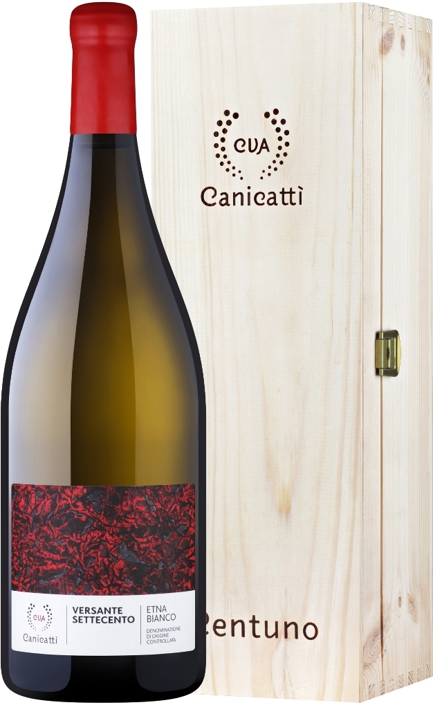 CVA Canicatti, Versante Settecento, Etna Bianco — свежее белое сухое вино, представляющее муниципалитет Дзафферана-Этнеа, расположенный на восточном склоне Этны. Его купаж представлен сортами Карриканте и Катарратто. Лозы, средний возраст которых составляет 15 лет, высажены на высоте 600-700 метров над уровнем моря на глубоких, богатых минералами почвах вулканического происхождения с песчаной текстурой. Такой тип почв позволяет лозам развивать сильную корневую систему. Урожайность не превышает 7 т/га. Урожай собирается вручную и прессуется целыми гроздями, после чего полученное сусло отстаивается при низком температурном режиме. Ферментация проводится в стальных резервуарах при контролируемой температуре 16°C в течение 2-х недель. Выдерживается вино 6 месяцев в стальных емкостях и еще 2 месяца в бутылках после розлива.