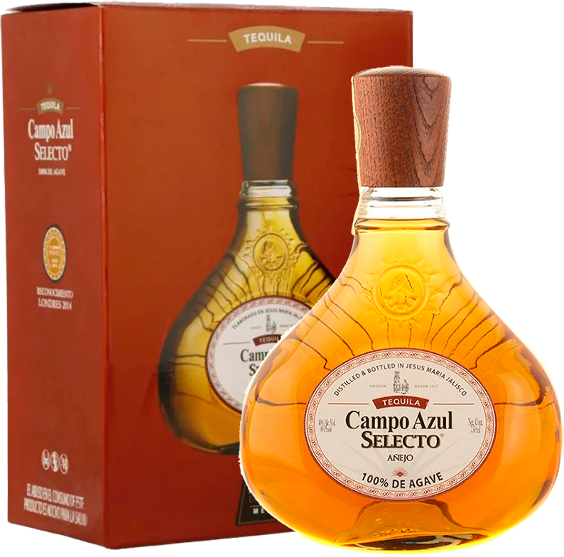 Campo Azul, Selecto Anejo — высококачественная текила из Мексики, созданная из стопроцентной агавы с применением старинных мексиканских технологий. Выдержка в бочках из древесины белого дуба длилась целый год, благодаря чему напиток приобрел красивый цвет и великолепный аромат из пряных специй и ванили. Двойной перегон в аламбике из нержавеющей стали придал крепкому напитку утонченность вкуса. Прекрасное длительное послевкусие с нотками ванили и благородной легкой горечи продляет минуты наслаждения с этим удивительным напитком. Прежде, чем текила начнет свой долгий путь к покупателю, ее разливают в текстурированные бутылки с выгравированным логотипом компании, а удобная эргономичная форма хорошо помещается в руке.