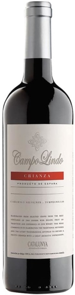 Campo Lindo, Crianza — элегантное красное сухое вино, изготовленное из винограда сортов Каберне Совиньон и Темпранильо, которые произрастают в Каталонии. Каберне Совиньон является одним из самых широко признанных сортов в мире. Первоначально этот сорт пришел из региона Бордо во Франции, и, благодаря отличной адаптации, в настоящее время его можно найти по всему миру. В Испании, однако, традиционный Темпранильо является наиболее широко культивируемым красным сортом винограда. Благодаря большой разнице между дневными и ночными температурами в ягодах сохраняется ароматическая свежесть и гармония. Урожай собирается по достижении ягодами оптимальной спелости. Каждый сорт винограда ферментируется отдельно при контролируемой температуре 26ºC. Выдерживается вино 9 месяцев в дубовых бочках.