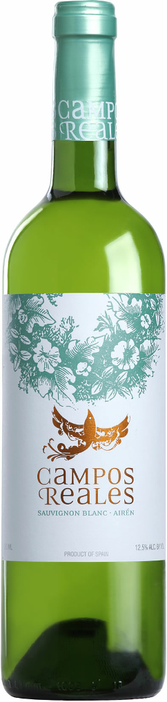 Campos Reales, Sauvignon Blanc-Airen — белое сухое вино, для изготовления которого производитель использует равные пропорции винограда сортов Совиньон Блан и Айрен. Ароматное, фруктовое вино станет отличным сопровождением к жаркому летнему дню, особенно если на вашем столе будут легкие, неострые блюда без обильного количества специй. Рекомендовано подавать хорошо охлажденным.