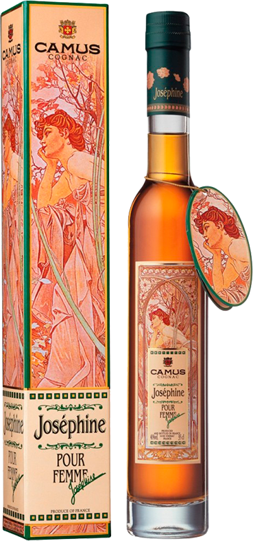 Коньяк Camus Josephine создан специально для женщин, он обладает легким, цветочным характером. Камю Жозефина выдерживается в дубовых бочках в течение 15-20 лет. Для дизайна упаковки и этикетки было выбрано произведение «Вечерняя задумчивость» знаменитого парижского художника эпохи модерн Альфонса Мухи.