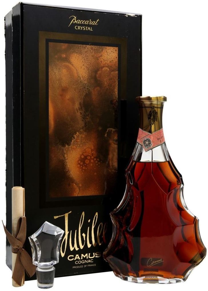 Французский коньяк Camus Jubilee был создан в 1918 году и приурочен к 50-летию со дня основания коньячного дома Camus. Этот благородный напиток содержит старейшие коньячные спирты из коллекции производителя, причем часть из них была разлита в дубовые бочки для выдержки еще в начале 19-го века. Камю Джубиле уникален по своему вкусу и аромату и привлекает внимание не только изысканным цветом, но и оформлением. Он продается в специальном графине из хрусталя ручной работы Баккара.