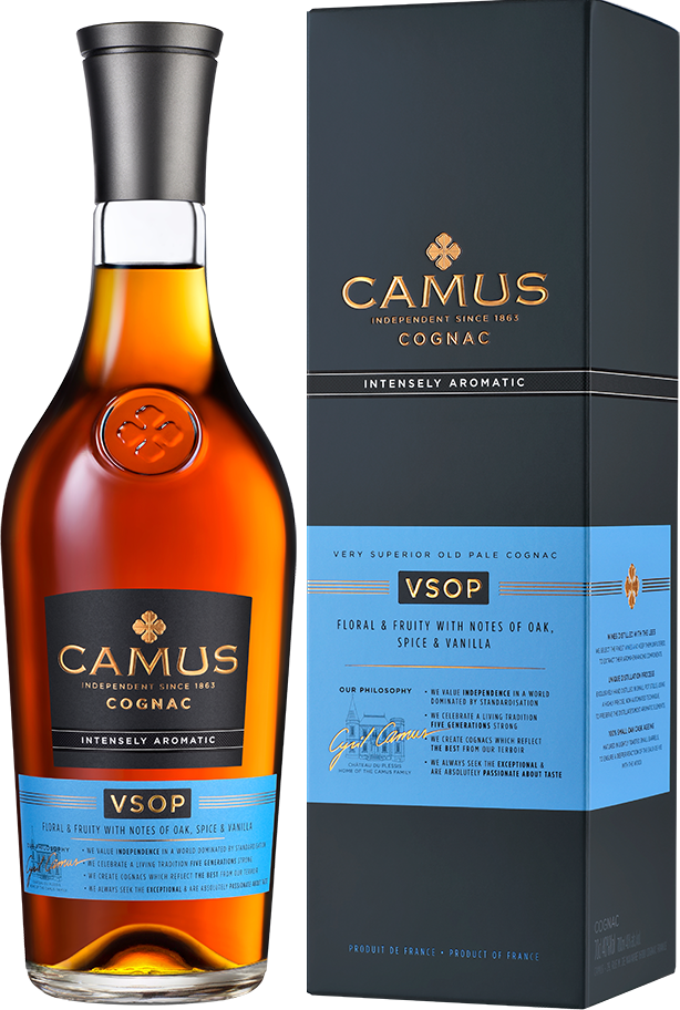 Camus, VSOP — высококачественный коньяк, который производится из лучших коньячных спиртов, поставляющихся из самых известных регионов. Коньяк выдерживается в дубовых бочках не менее 5 лет. Разливается Камю в элегантные бутылки, выполненные в ярком, современном дизайне.