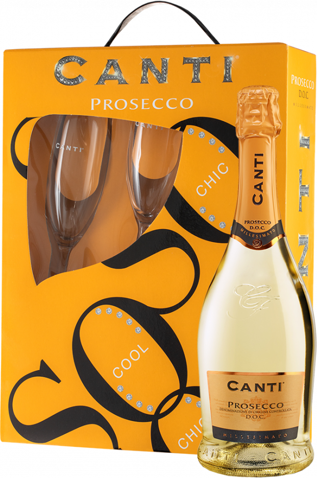 Игристое вино Canti, Prosecco, in gift box with 2 glasses